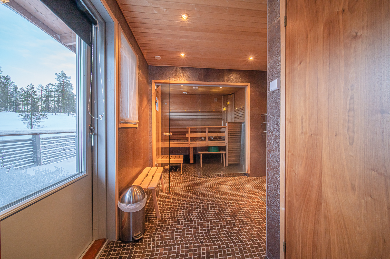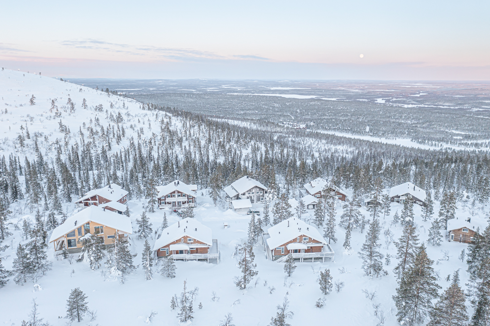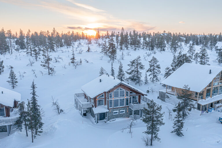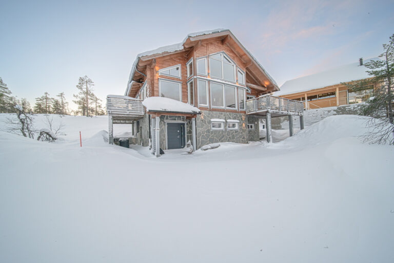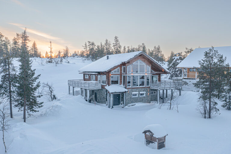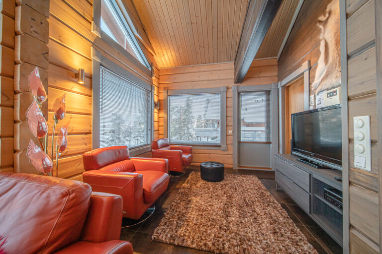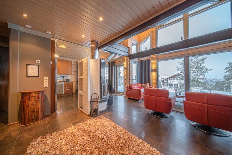 Tyylikäs 146m2 hirsimökki 12 hengelle, kävelymatkan päässä Levin keskustasta.