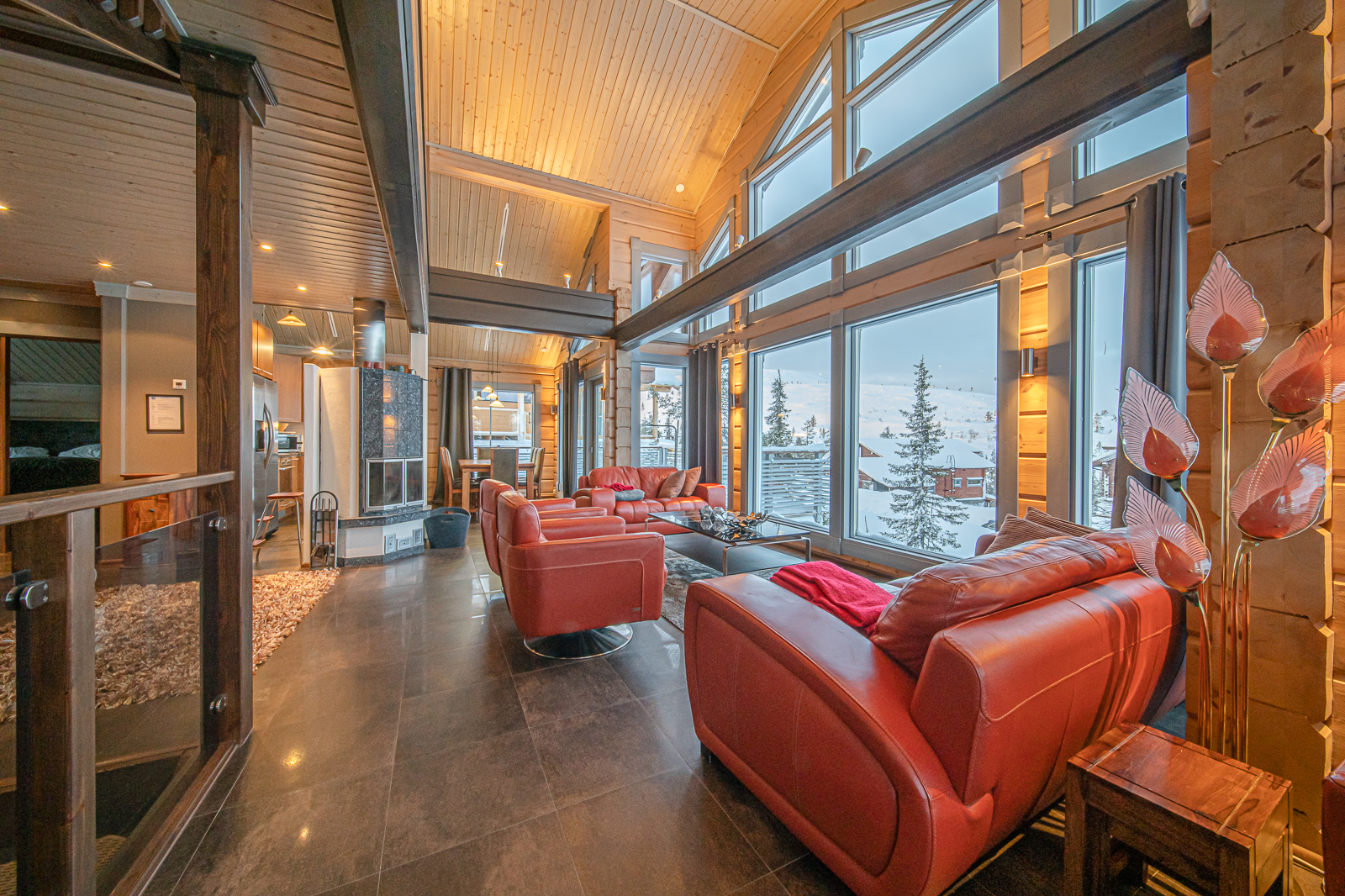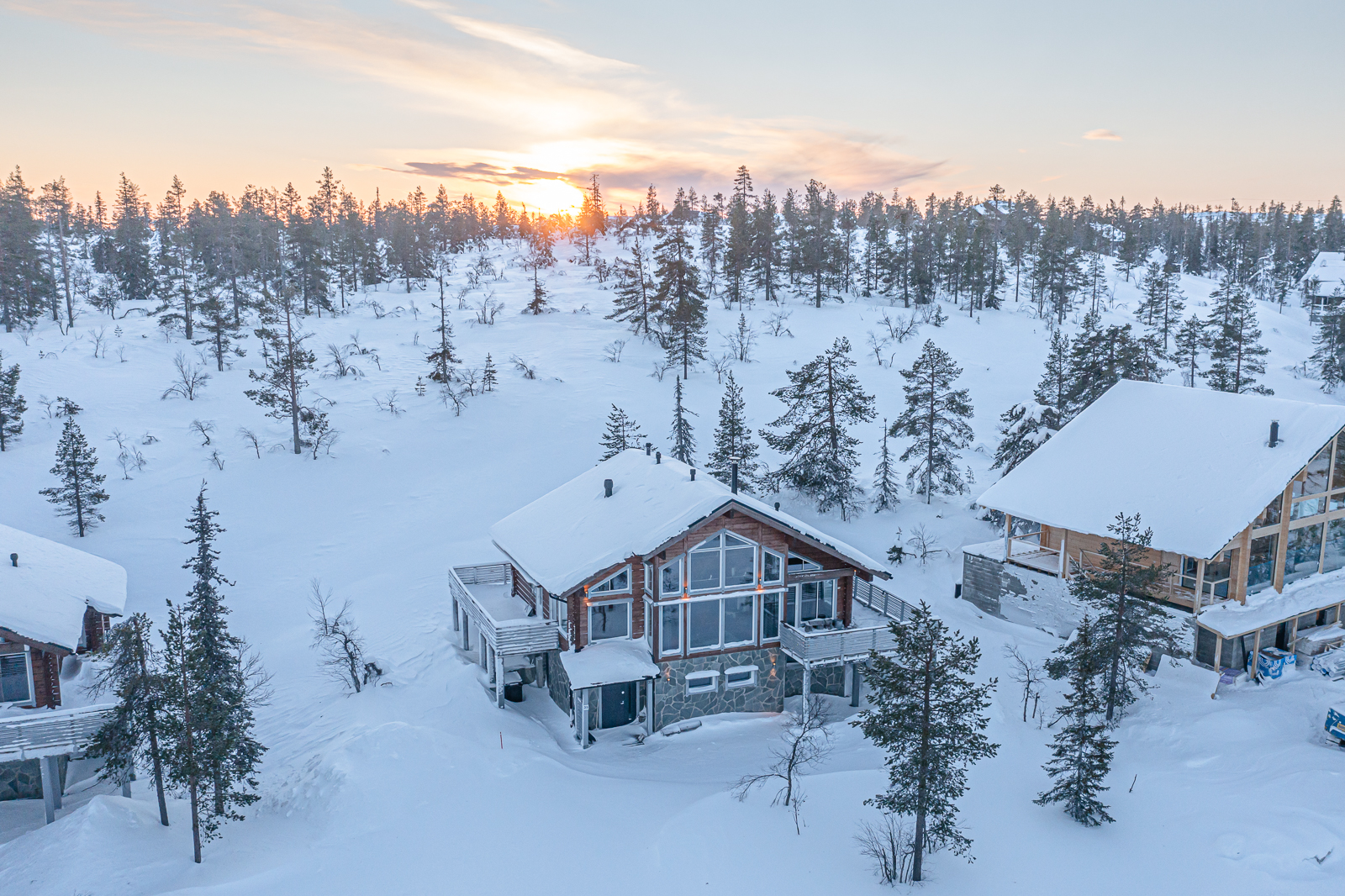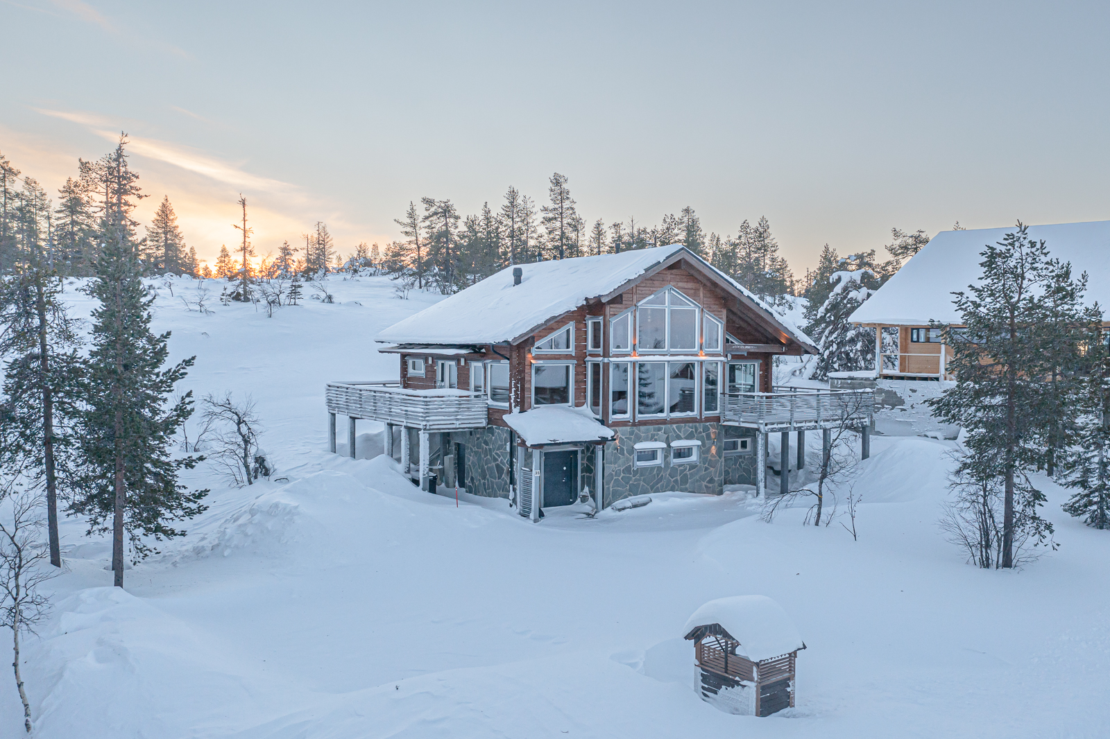 Utsuvaarassa Levin parhaissa maisemissa sijaitseva mökki tarjoaa korkealuokkaista majoitusta kahdelletoista henkilölle. Mökissä on kuusi makuuhuonetta, olohuone, keittiö, ruokailutila, elokuvahuone, kodinhoitotila, saunaosasto sekä ulkoterassit kiertävät mökkiä. Sisätilat kolmessa kerroksessa, ylimmässä kerroksessa master bedroom omalla kylpyhuoneella. Keskikerroksessa olohuone, saunaosasto, keittiö ja kaksi makuuhuonetta sekä pääsisäänkäynti. Alakerrassa kodinhoitotila, kolme makuuhuonetta. wi - fi. Avarista ikkunoista hyvät mahdollisuudet nähdä revontulet pohjoistaivaalla. Lähin ravintola, hissi, latu ja kelkkareitti 300 metrin päässä. Levin keskustaan 10 km.